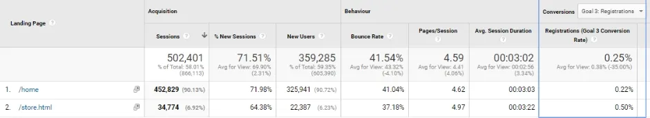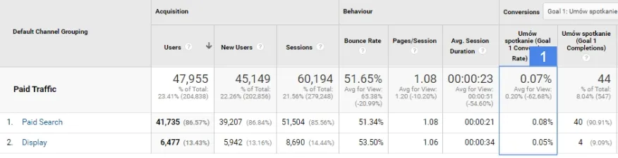 For this purpose, we should check in our Landing Page report which of the sites that has the highest conversion volume also has a high conversion rate (no. 1 in the table above). It may happen, as in the example above, that it is not always the best idea to direct users from the campaign to the main page.