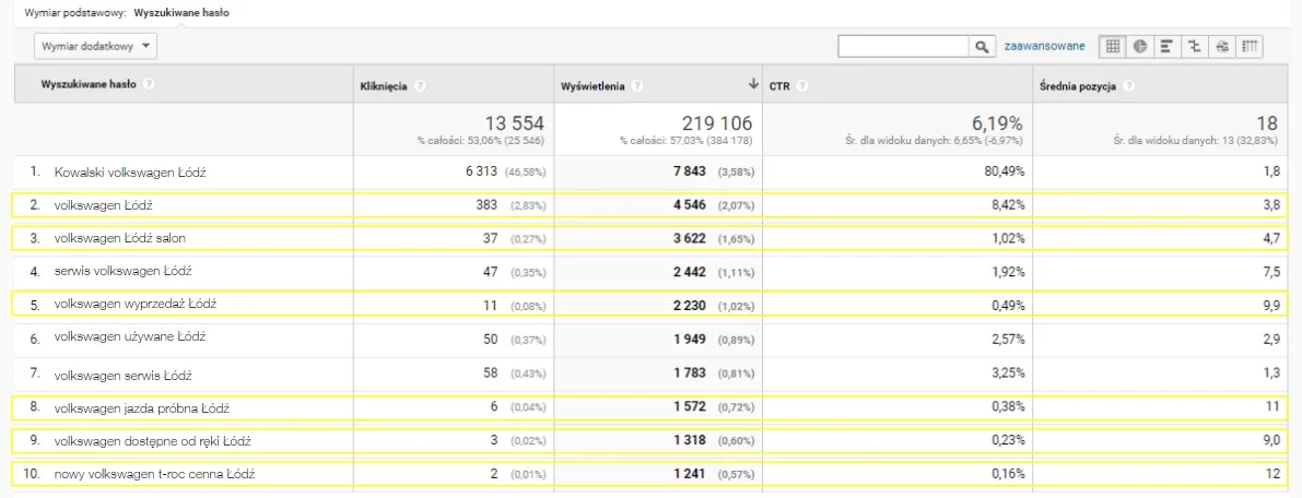 One of the most frequently analyzed reports in each project is the traffic acquisition report. With its help, we are able to check which sources generate traffic on our website and which of them meet our business goals best. Using this report, a car dealer can see which part of the money invested in advertising pays off best.