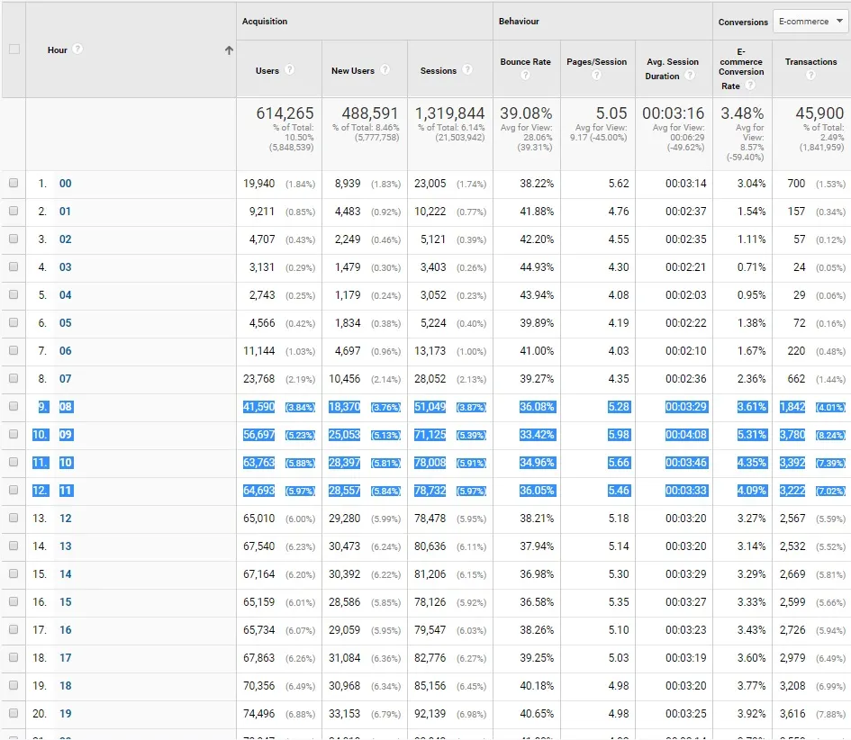 In the Google Ads Section reports on hours and days, we are able to select both the hours and the days when our advertising budget is spent more efficiently and in this way are able to optimize our advertising activities.